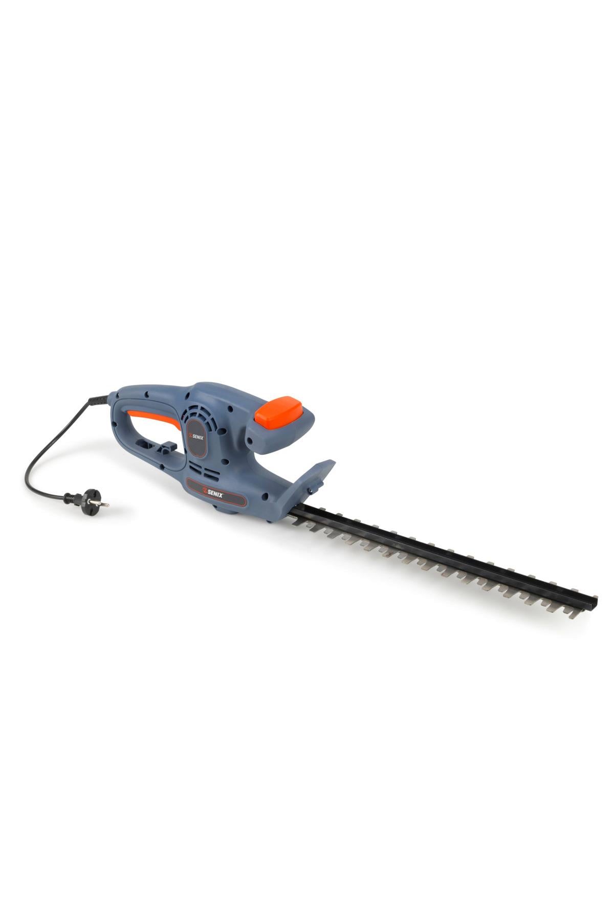 Senix HTE4.5-L-EU Elektrikli Çit Biçme Makinesi, 52 cm uzunluğundaki çift bıçak sistemi sayesinde çit ve çalıların hızlı ve düzgün şekilde kesilmesini sağlar. 450W motor gücü ve 28 mm diş aralığı sayesinde orta kalınlıktaki dallarda etkili kesim performansı sunar.